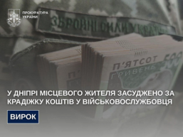 Дніпрянина засуджено за крадіжку коштів у військовослужбовця