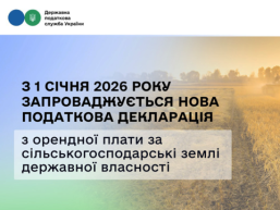З 1 січня 2026 року – нова податкова декларація з орендної плати за сільськогосподарські землі державної власності
