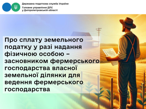 Головне управління ДПС у Дніпропетровській області нагадує що відповідно до п.п. 14.1.147 п. 14.1 ст. 14 Податкового кодексу (далі – ПКУ) плата за землю – обов’язковий платіж у складі...
