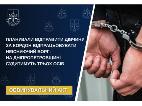 Прокурори Дніпропетровської обласної прокуратури направили до суду обвинувальний акт стосовно жінки та двох її спільників, які організували відправлення дівчини за кордон з метою сексуальної експлуатації. Обвинувачена...