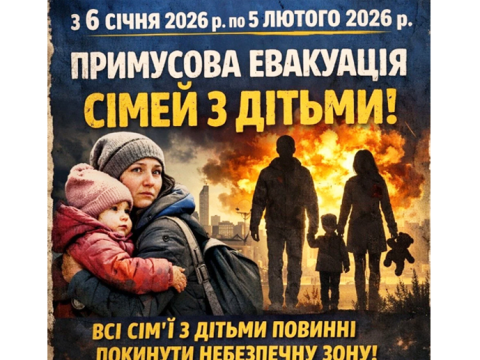 Евакуація здійснюється разом із батьками або законними представниками та триватиме протягом 30 днів – з 6 січня до 5 лютого 2026 року.