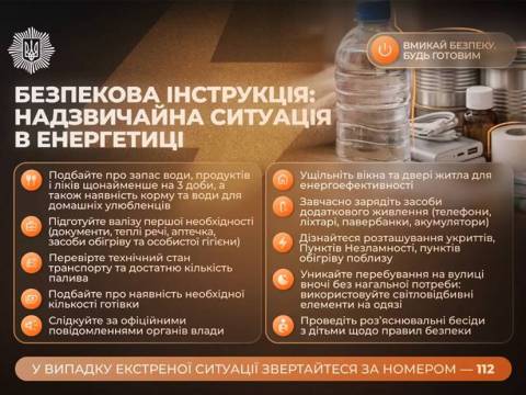 Будьте готові до посилених заходів безпеки: слідкуйте за повідомленнями влади, подбайте про безпеку дітей і обмежте перебування на вулиці без нагальної потреби в темну пору доби.