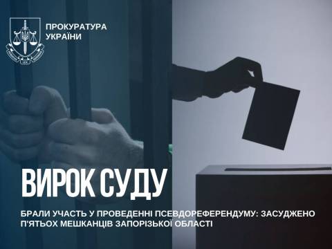 За публічного обвинувачення прокурорів Запорізької обласної прокуратури в порядку спеціального судового розгляду п’ятьох жителів Запорізької області визнано винними у колабораційній діяльності, вчиненій за попередньою змовою групою осіб (ч. 2 ст. 28 ч. 5 ст. 111-1 КК України).