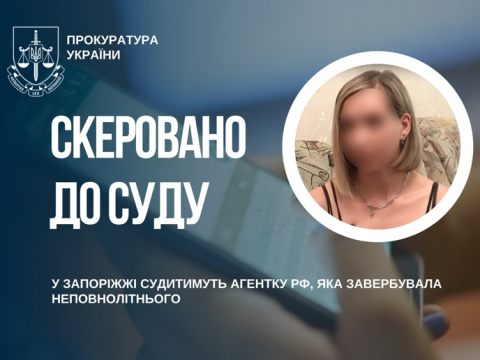 Прокурори Запорізької обласної прокуратури скерували до суду обвинувальний акт відносно громадянки України, яка працювала на спецслужби рф та залучила неповнолітнього до проведення підривної діяльності проти України.