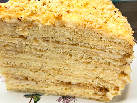 Хатлама0,5 л води, чайна ложка солі, пачка ванільного цукру. Розкачати тісто тонко у формі великого круга. 5 кругів скласти один на другий, змащуючи кожен сумішшю (300 г розтопленого вершкового масла...