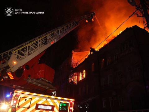 У Дніпрі внаслідок вечірньої та нічної масованої ракетно-дронової атаки виникли пожежі одразу на кількох локаціях: зайнялися житлові будинки, офісна будівля, гаражі та автомобілі, горіло на території навчального закладу.