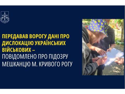 На виконання його завдань підозрюваний здійснював відеофіксацію військових об’єктів та визначав їх розташування за GPS-координатами. Він передавав дані про місця дислокації особового складу ЗСУ та військової техніки у м. Кривий Ріг.