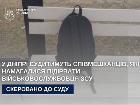 За процесуального керівництва Дніпропетровської обласної прокуратури до суду передано обвинувальний акт стосовно співмешканців, які планували підірвати військовослужбовця ЗСУ (ч. 2 ст. 15, ч. 2 ст. 258, ч. 1 ст. 263, ч. 1 ст. 263-1 КК України).