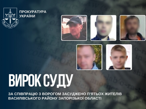 За публічного обвинувачення прокурорів Запорізької обласної прокуратури в порядку спеціального судового розгляду винесено обвинувальні вироки стосовно п’ятьох громадян України, які обійняли посади у незаконних правоохоронних органах, створених окупаційною адміністрацією на тимчасово окупованій території Запорізької області (ч. 7 ст. 111-1 КК України).