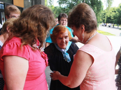 Із шевченківської Черкащини добралась до берегів Дніпра Ольга Кріт. Після нашого факультету вона ще встигла закінчила історичний. Стала по-вчительськи поважною, а очі – такі ж, як 30 літ тому. З прифронтової Межової приїхала Наталка Вознюк, яка працює у місцевій районній газеті. Розповідала нам про те, що в 60 км від них проходили запеклі бої, а відтак відчуття небезпеки досить загострене. Тому всі межівчани хочуть миру на Донбасі.